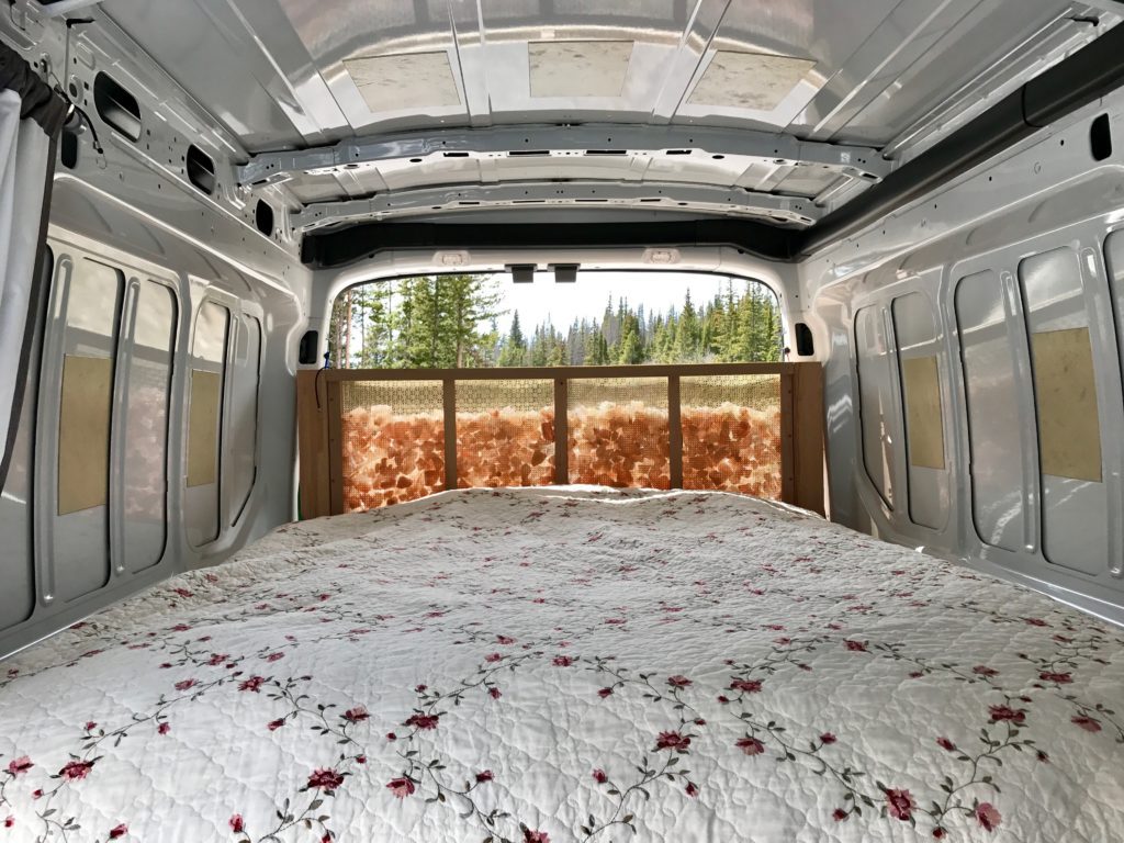 Ana Harris wrote about creating a headboard filled with Himalayan salt for her van bed in a post called “Building the Headboard” in her avoidance-oriented blog Ana Harris Writes.