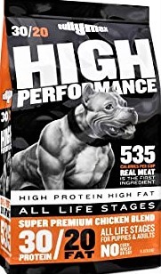 Eukanuba Premium Performance 30/20 Sport has the main ingredients of chicken by-product meal, corn, brewers rice, chicken fat, wheat gluten, corn gluten meal, natural flavors, beet pulp, pea fiber, fish oil and vegetable oil. It contains 30% protein and 20% fat.