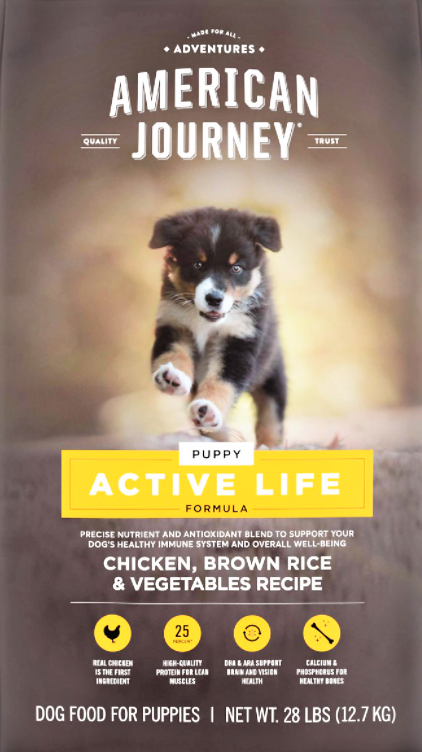 The foods are stated as including either wild-caught Alaskan salmon or antibiotic-free chicken sourced from the U.S.