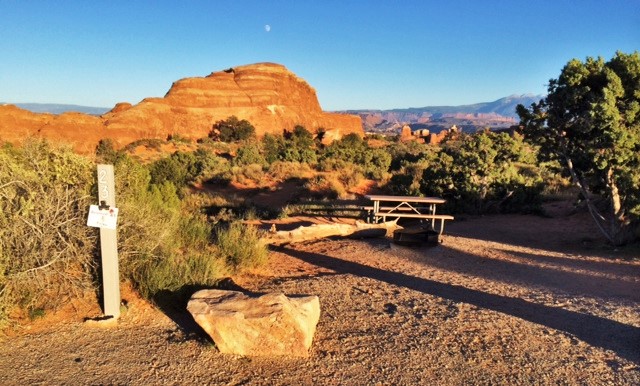 Devil’s Garden Campgound: This campground (located about 18 miles from the entrance) is usually reserved well in advance during the non-winter months through the National Park Service’s online service. Those who want to try to stay here at the last minute are advised to visit the campground in the morning. Although I have not stayed here, it looks like a pleasant and likely very quiet campground, with some flush toilets and ranger presentations in the evening. The cost per site is $20/night.