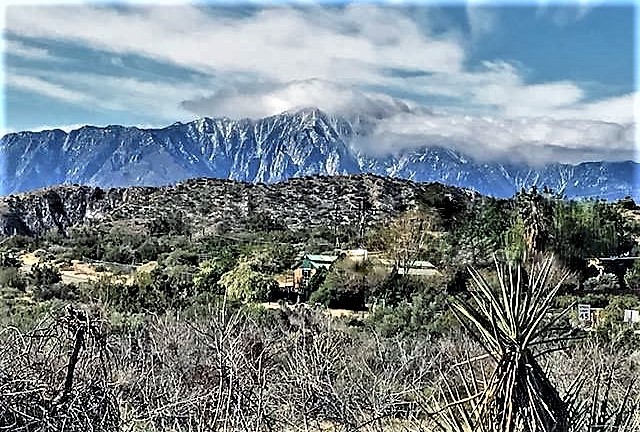 Mt. San Jacinto viewed from Morongo Valley, CA. Idyllwild is on the other side of that mountain. It’s 80 degrees here, still close to freezing up there.