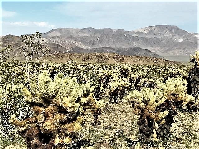 Another view of the Cholla Garden in Joshua Tree National Park. It’s bigger than it looks on the map. And full of spike-bombs.