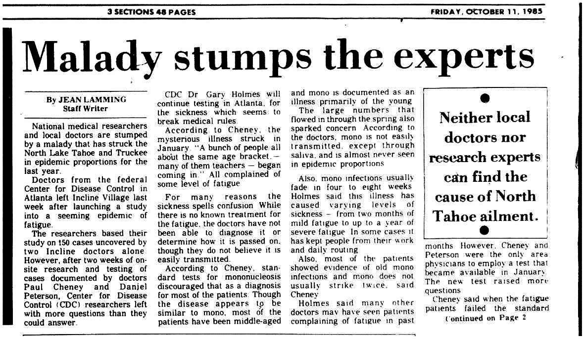 The researchers based their study on 150 case uncovered by two Incline doctors alone. However, after two weeks of on-site research and testing of cases documented by doctors Paul Cheney and Daniel Peterson, Center for Disease Control (CDC) researchers left with more questions than they could answer.
