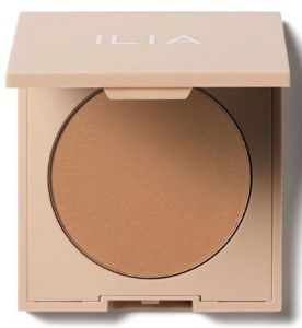 The description of this product reads, “Clean, matte bronzer delivers a just-in-from-the-beach kiss of color. A buttery blend of nourishing ingredients helps boost hydration while innovative pigment technology protects from environmental stressors. Rich and natural terracotta tones leave skin looking healthy with an outdoorsy glow. Shimmer free.”